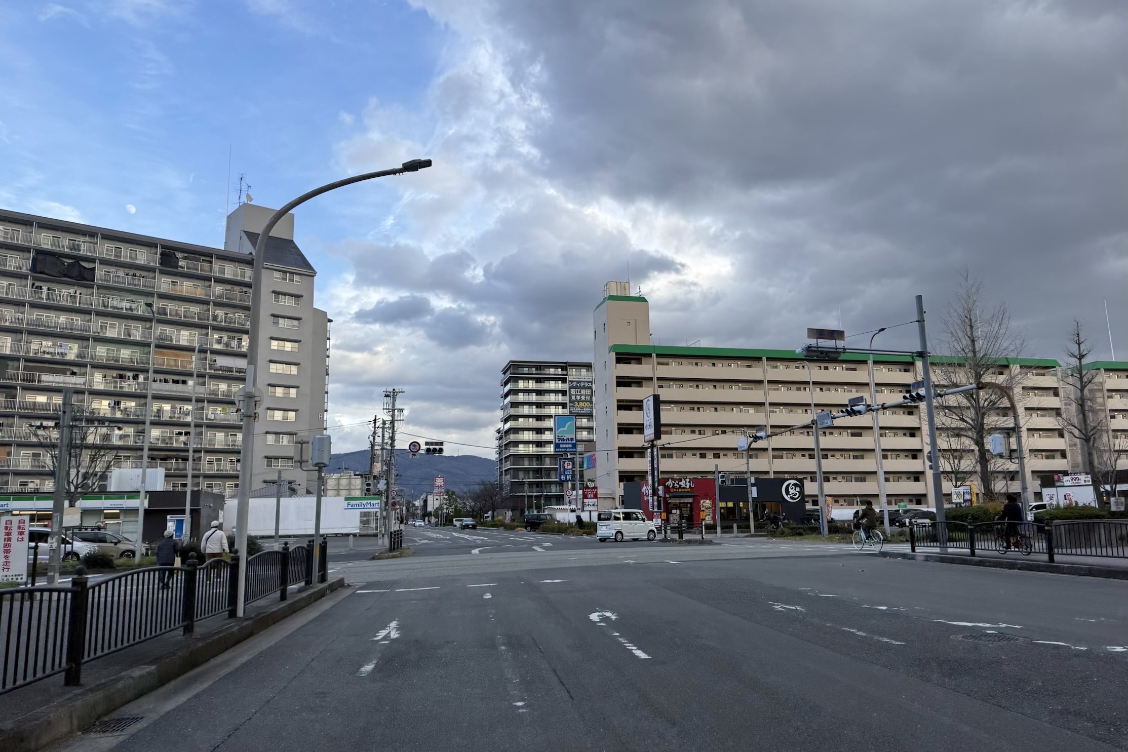 正解は、、、〒578-0946 大阪府東大阪市瓜生堂3-1付近。府道2号中央環状線「瓜生堂東交差点」を東に向かって撮影しました。