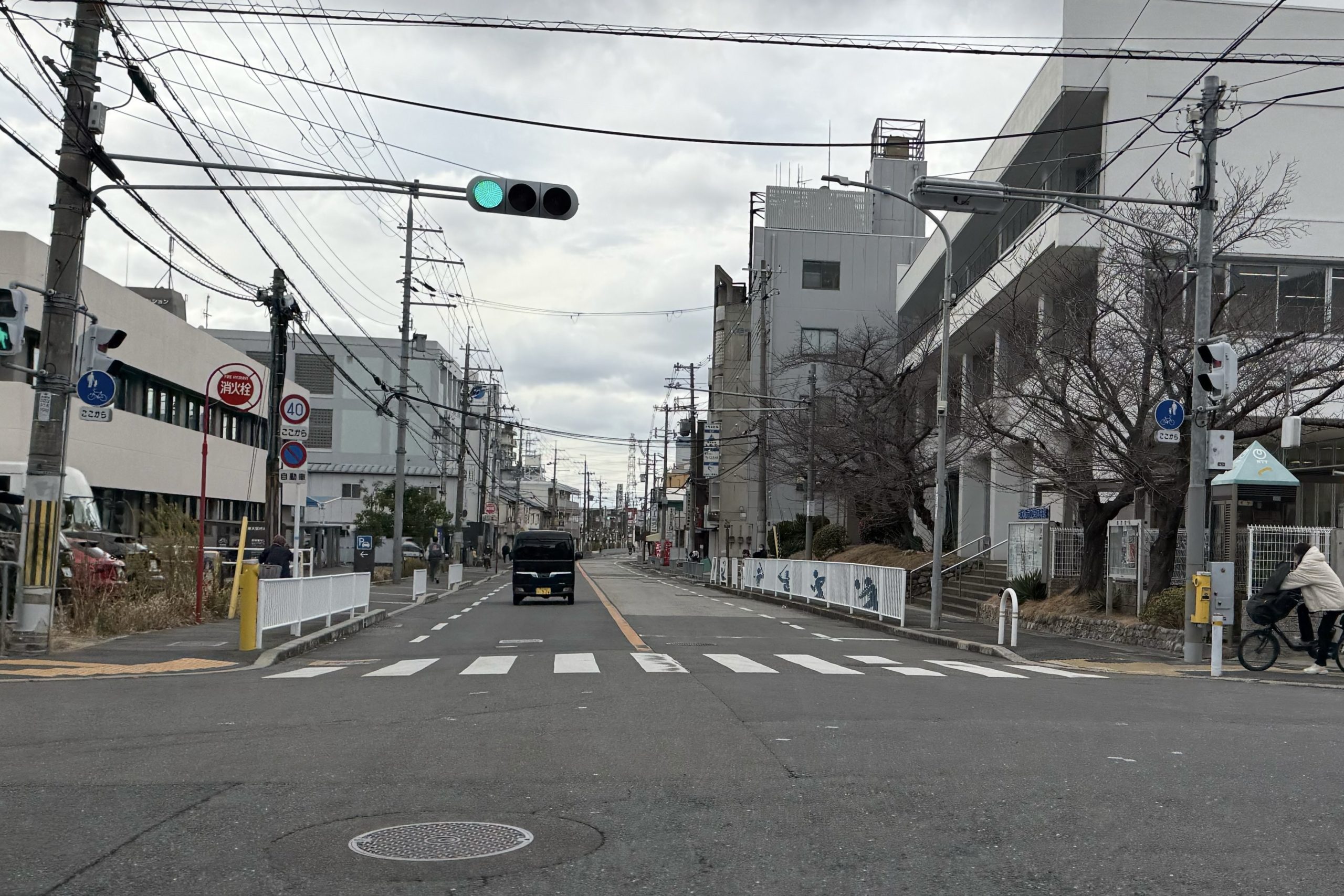このまま西へ進むと、大阪府立枚岡樟風高校の南側を通って国道170号線(大阪外環状線)と交わる鷹殿町交差点に。