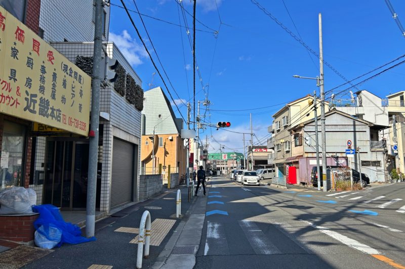 正解は、、、〒577-0827 大阪府東大阪市衣摺3-6付近。衣摺の交差点から府道173号線(北八尾街道)を北西に向かって撮影しました。道なりに進むとJR長瀬駅前に出ます。