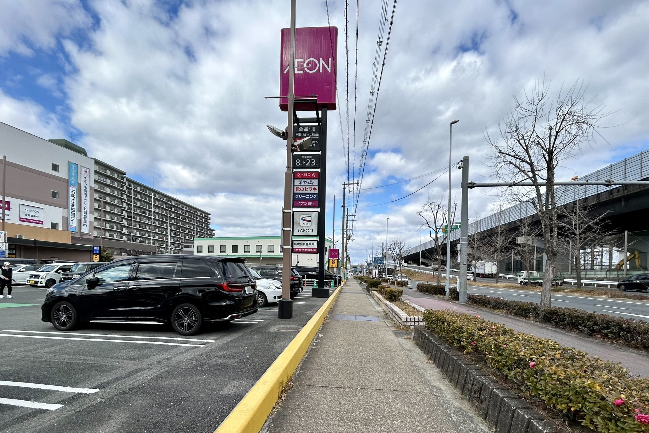 左手に見えるのは「イオンスタイル東大阪」。2025年4月11日にオープンした同店はもうすぐ1周年です。セールなんかやリはりませんかね?