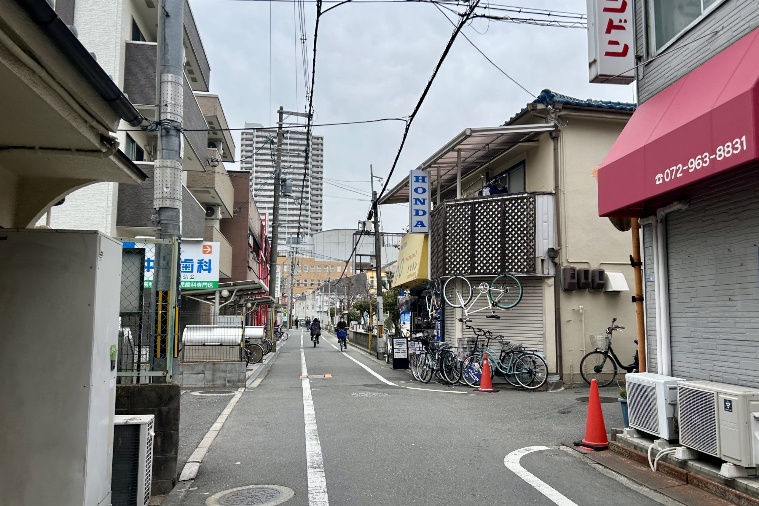 正面奥には若江岩田駅前の市街地再開発ビル「希来里(キラリ)」が。東大阪で2番目に高い建物です。では1番高い建物は?
