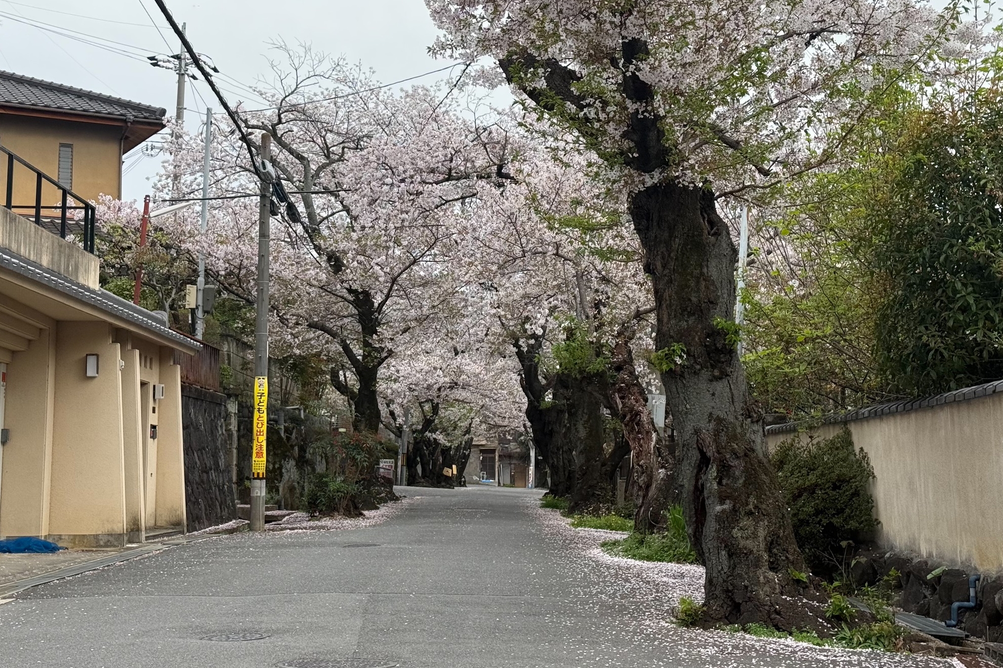 正解は、、、〒579-8011 大阪府東大阪市東石切町4-3付近、石切駅東側の桜坂を南に向かって撮影しました。