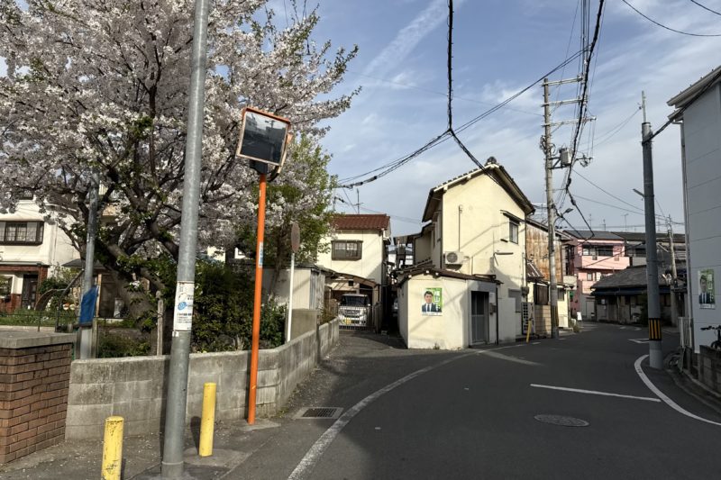 正解は、、、〒577-0817 大阪府東大阪市近江堂1-4付近を東に向かって撮影しました。右手の弥生公園から、道なりにぐいっと右へ進むと「洋風惣菜 アバ」が見えてきます。コロッケが有名ですが、ポテトサラダもおいしいんだよ。