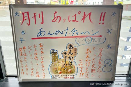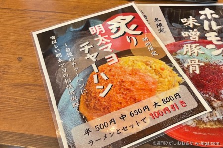 この4店舗で今、オリジナルチャーハン対決が実施されています。ちなみに11月まではまぜ麺対決をやってはりました。