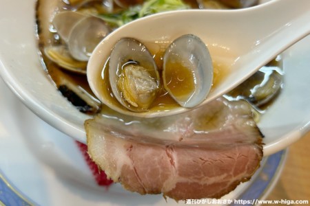 嘉数製麺所の4月限定「あさりラーメン」に三四郎もご満悦