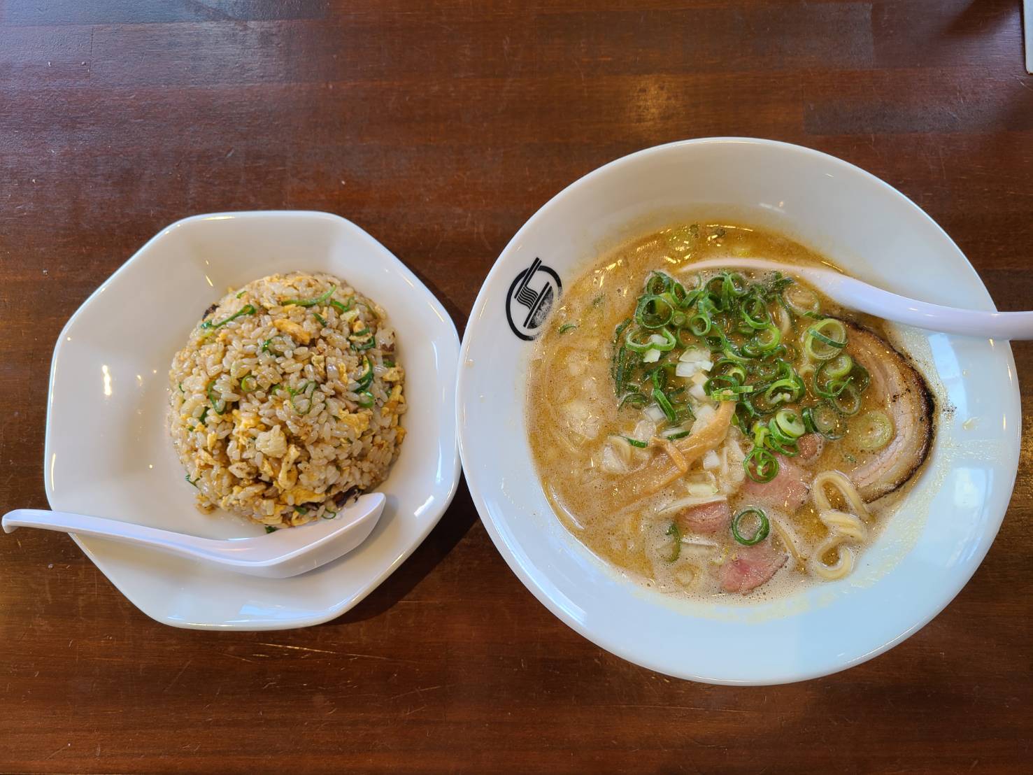 今回は鶏白湯ラーメンのセット。クリーミーなスープのラーメンと、香ばしいチャーハンの共演がすばらしい。
