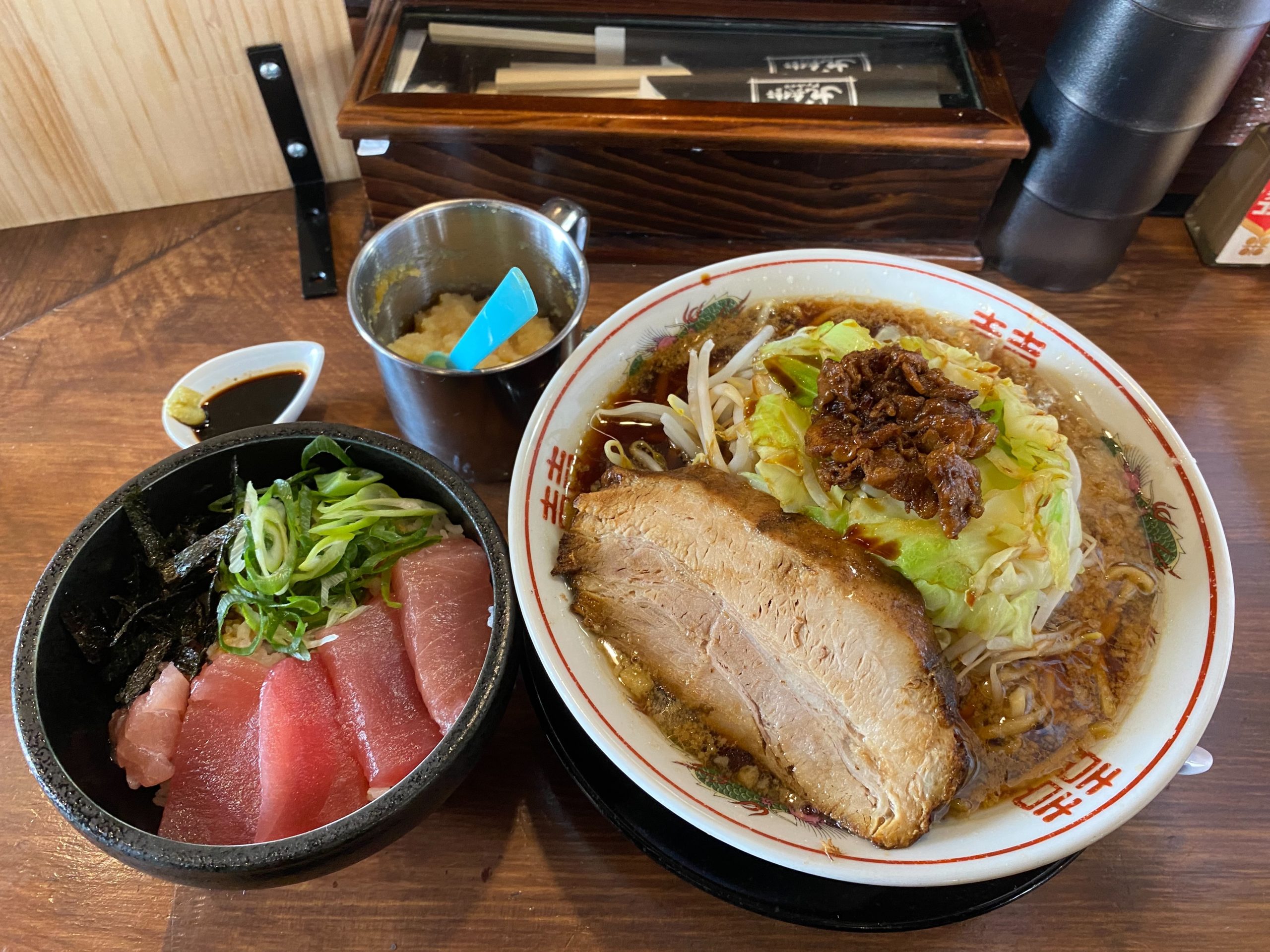 鶏そば、マグロ丼はセットで頼みましょう。
