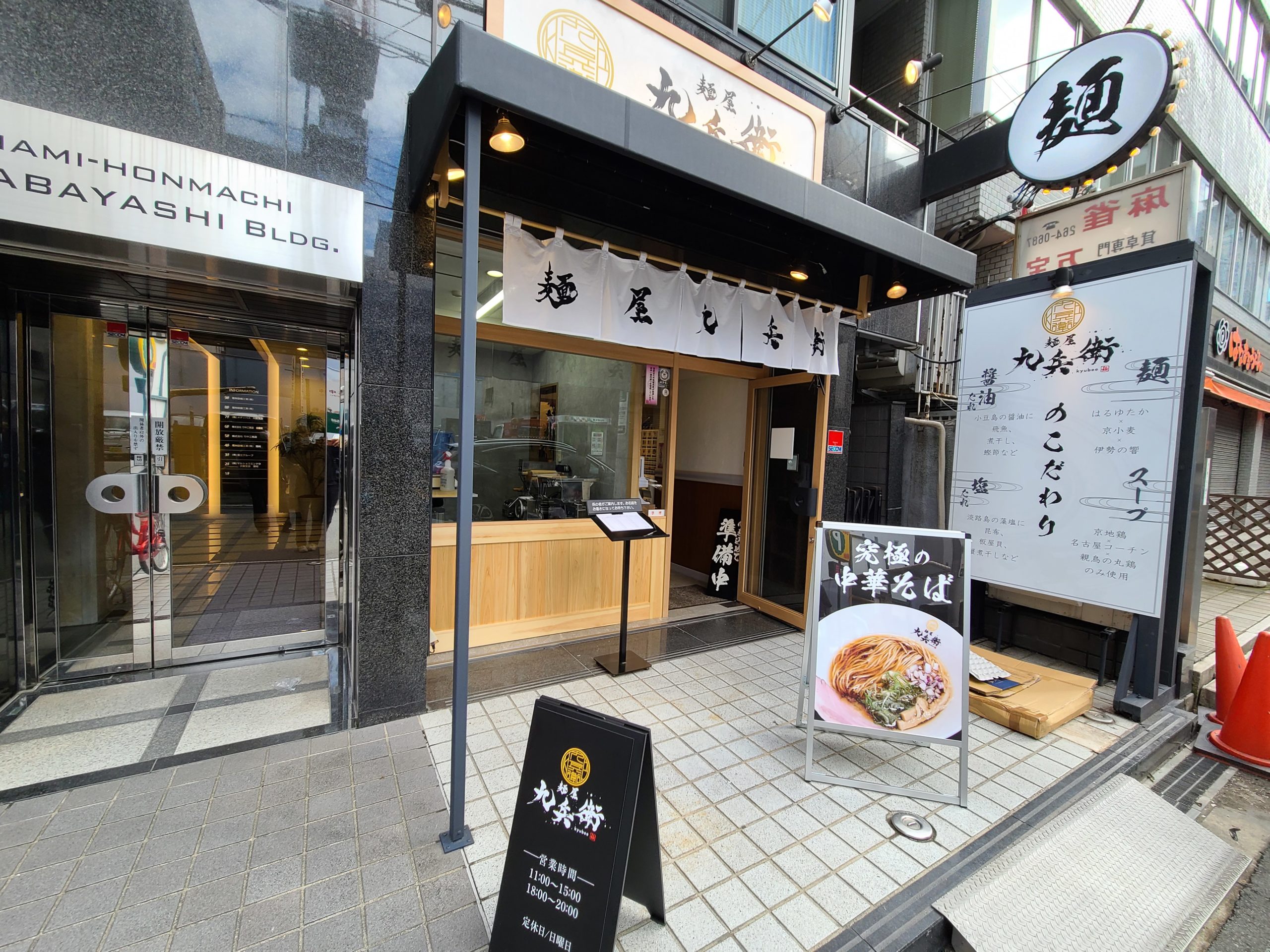 堺筋本町徒歩2分、船場センタービルからもすぐの「麺屋 九兵衛」。