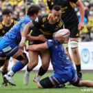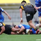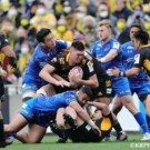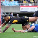 サンゴリアスが合計10トライを決め圧勝。首位をキープした。前半で差をつけられたシャイニングアークスは、後半で元オーストラリア代表のイズラエル・フォラウのトライを起点に巻き返しを図るが、及ばなかった。
