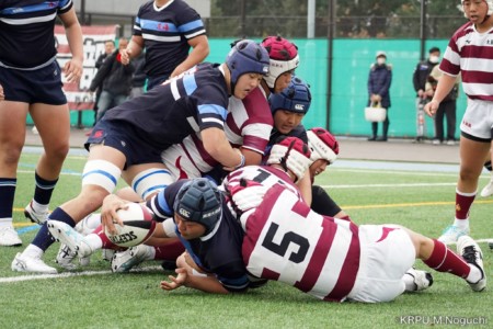 その後も東海大仰星のペース。相手陣ゴール前ラインアウトから押し込み、フェーズを重ねて8百武がトライを奪うなど、一方的な展開に。