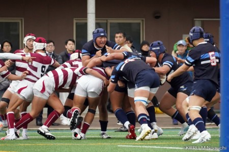 ラスト5分、大阪朝鮮は相手陣ゴール前で猛攻を仕掛ける。ラインアウトからFWでフェーズを重ねるも、トライならず。東海大仰星が守り抜き、決勝戦へ駒を進めた。