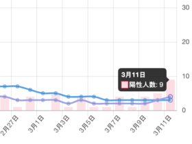 3月11日大阪府の報道発表によると、東大阪市での新型コロナウィルス新規陽性判明は9人でした。累計で3,020人の陽性が判明しています。