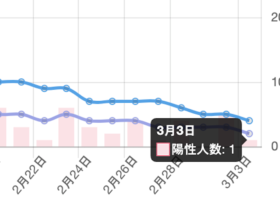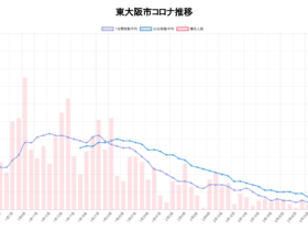 2月27日大阪府の報道発表によると、東大阪市で新たに1人の陽性が判明しました。累計陽性者数は2,981。1週間(2月20日〜2月27日)の累計新規陽性者は20人で、昨年10月下旬の水準です。