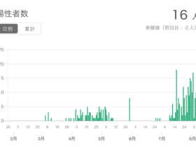 8月7日、大阪府の報道発表によると、東大阪市では16人の新規陽性が判明しました。1人は調査中(※1)で、15人は無症状か軽症。感染経路不明は9人です。