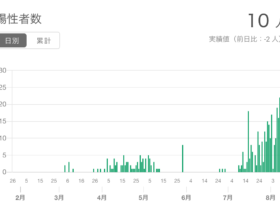 8月10日、大阪府の報道発表によると、東大阪市では10人の新規陽性が判明しました。無症状が1人で軽症が8人、調査中が1人(※1)。8人の感染経路が不明です。