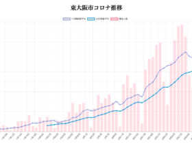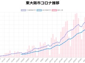 9月1日大阪府の報道発表によると、東大阪市での新型コロナウィルス新規陽性判明は195人(予測値:312人)でした。東大阪市の今までの累計陽性者は10,381人です。