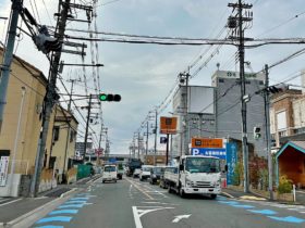 正解は、、、〒577-0066 大阪府東大阪市高井田本通7-5付近から東へ向かって撮影しました。国道308号線(中央大通り)の一本北側…