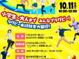 日時 2025年10月11日(土) 10:00〜12:00 開催場所 東大阪市花園ラグビー場 (〒578-0923 大阪府東大阪市松原南1-1-1) アクセス 近鉄奈良線「… -